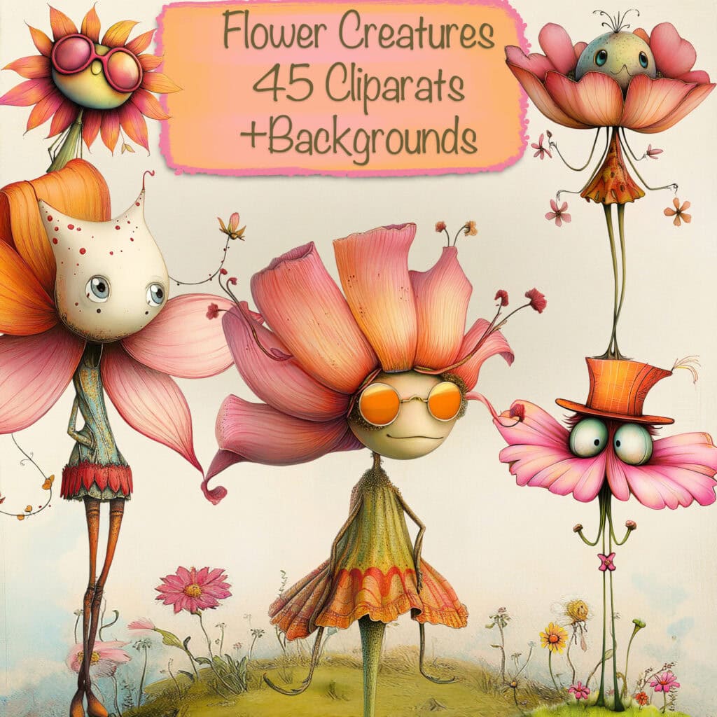 Quirky Flower Characters Clipart & Backgrounds