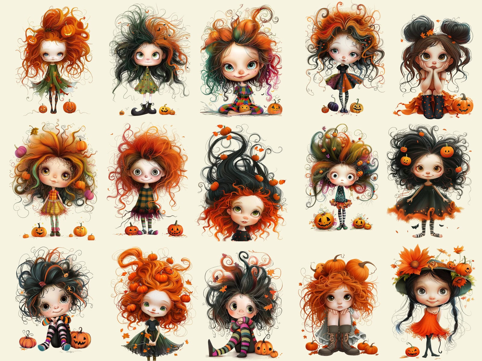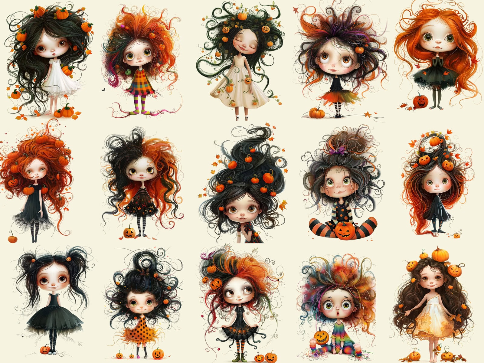 Adorable Little Pumpkin Girls Clipart & Backgrounds