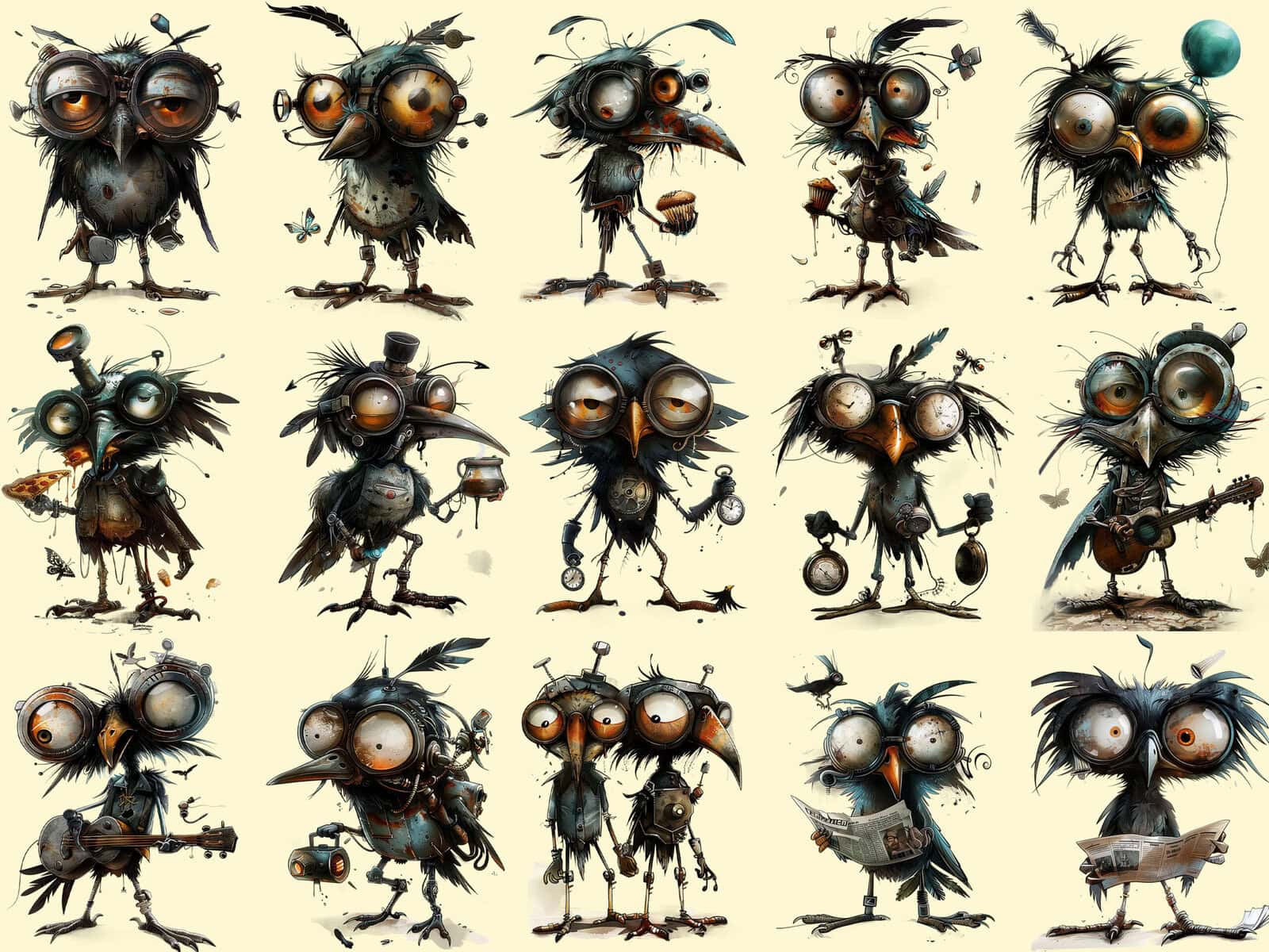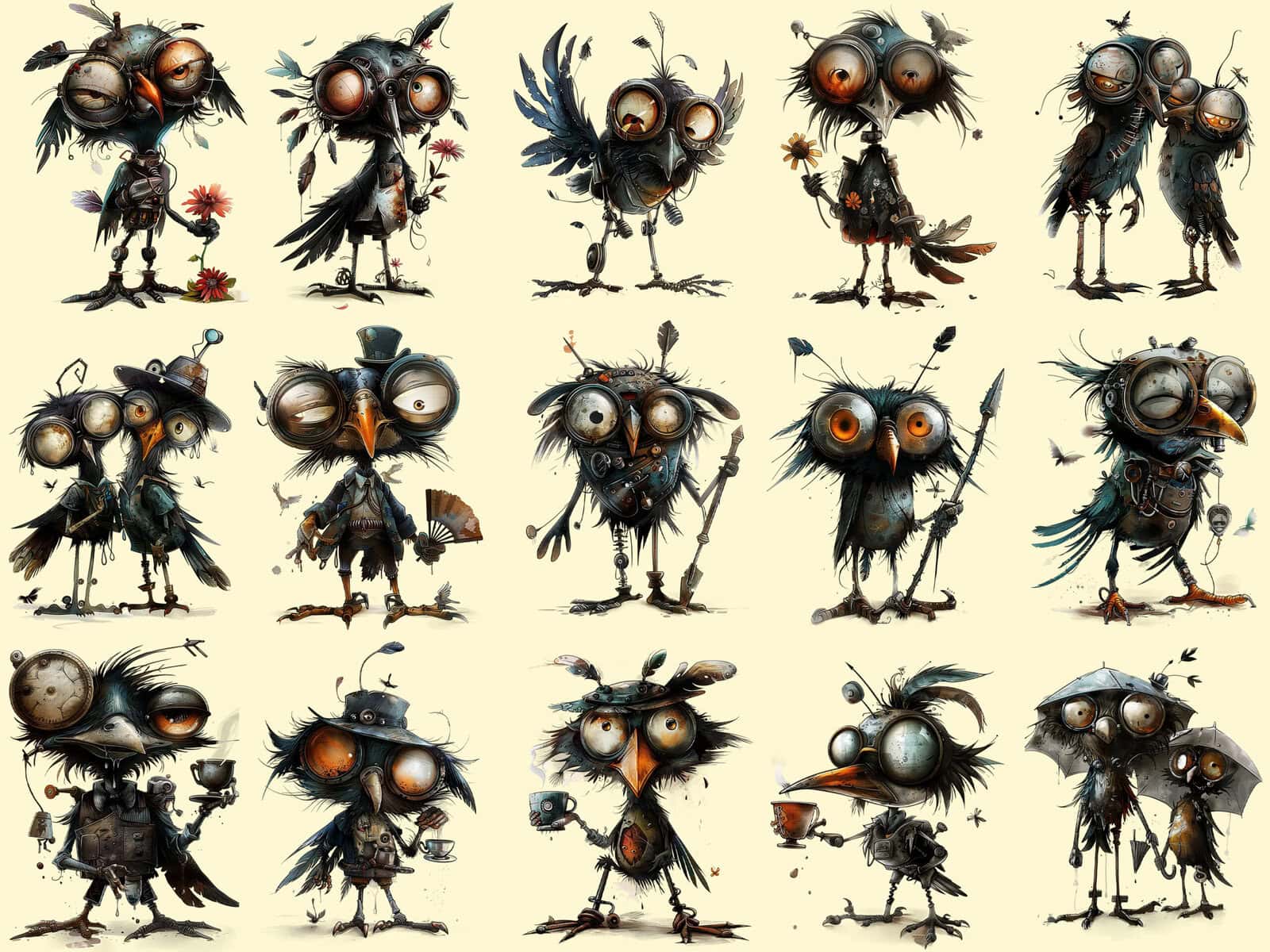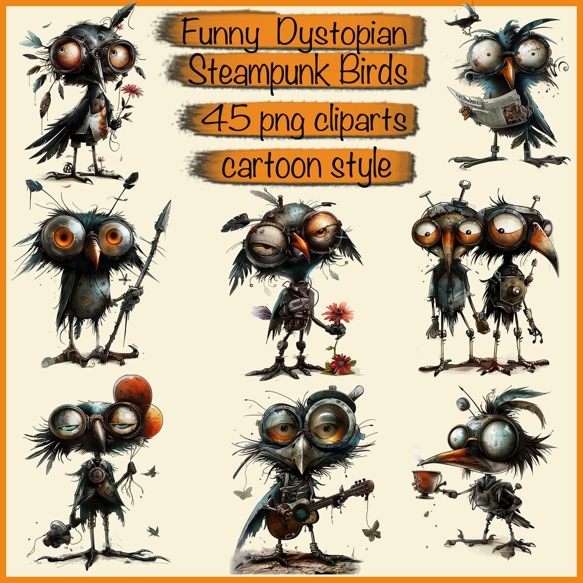 Funny Dystopian Steampunk Birds Clipart
