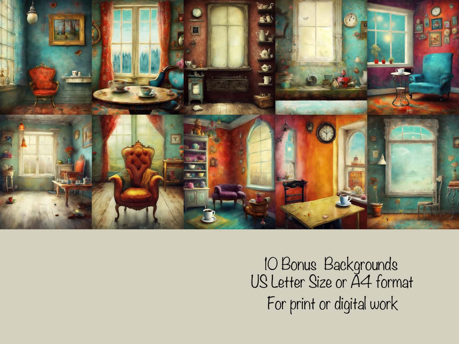 • 10 backgrounds (8.5 x 11 inches).